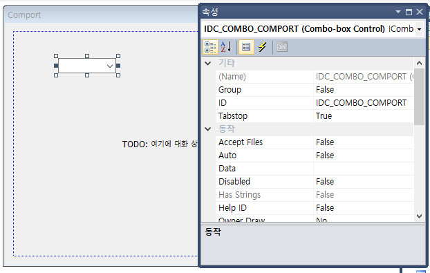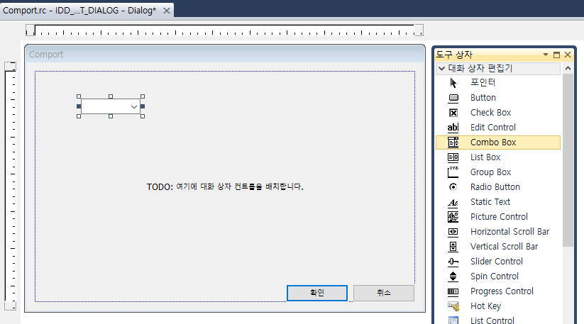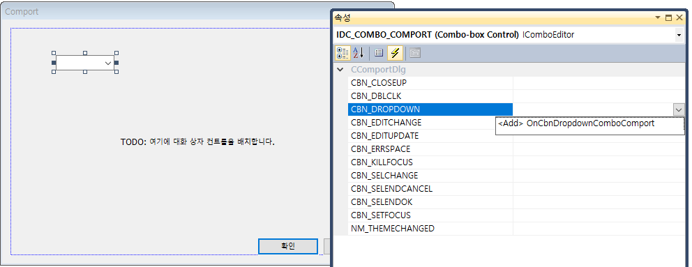 ▷ CComboBox::MeasureItem - Combo 박스 치수를 결정하기 위해 불려짐.