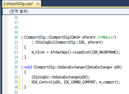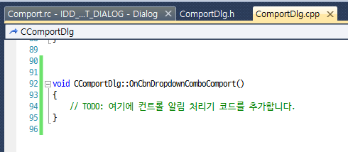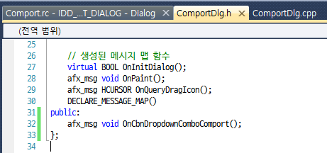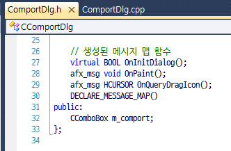 ComportDlg.h 에 시리얼 포트를 가져오는 함수를 하나 선언해 주겠습니다.