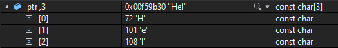 ptr 에 대해 조사하고 싶은 경우 조사식 에 ptr 을 넣을 경우 배열의 맨 첫글자만 보이게 됩니다.